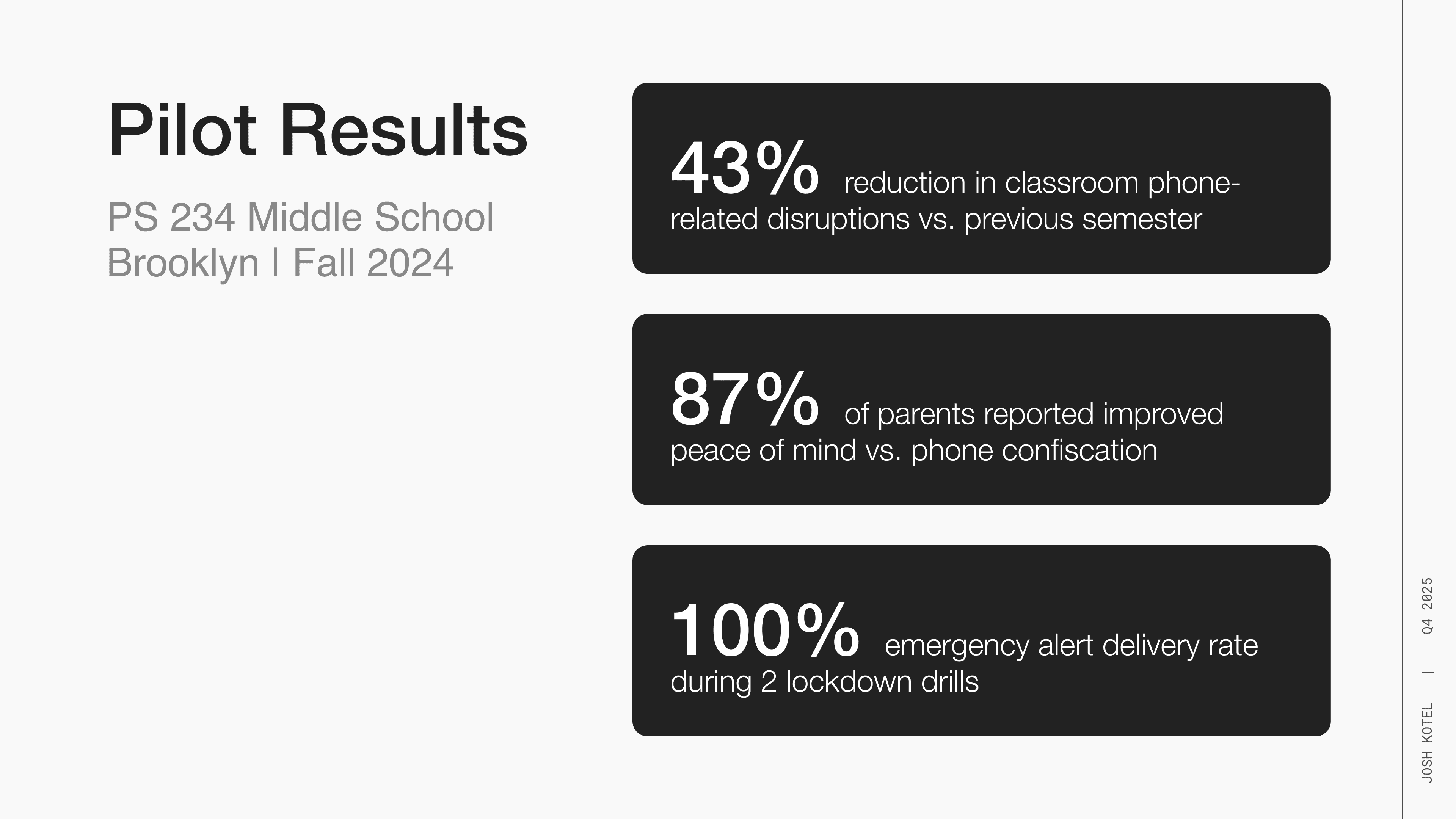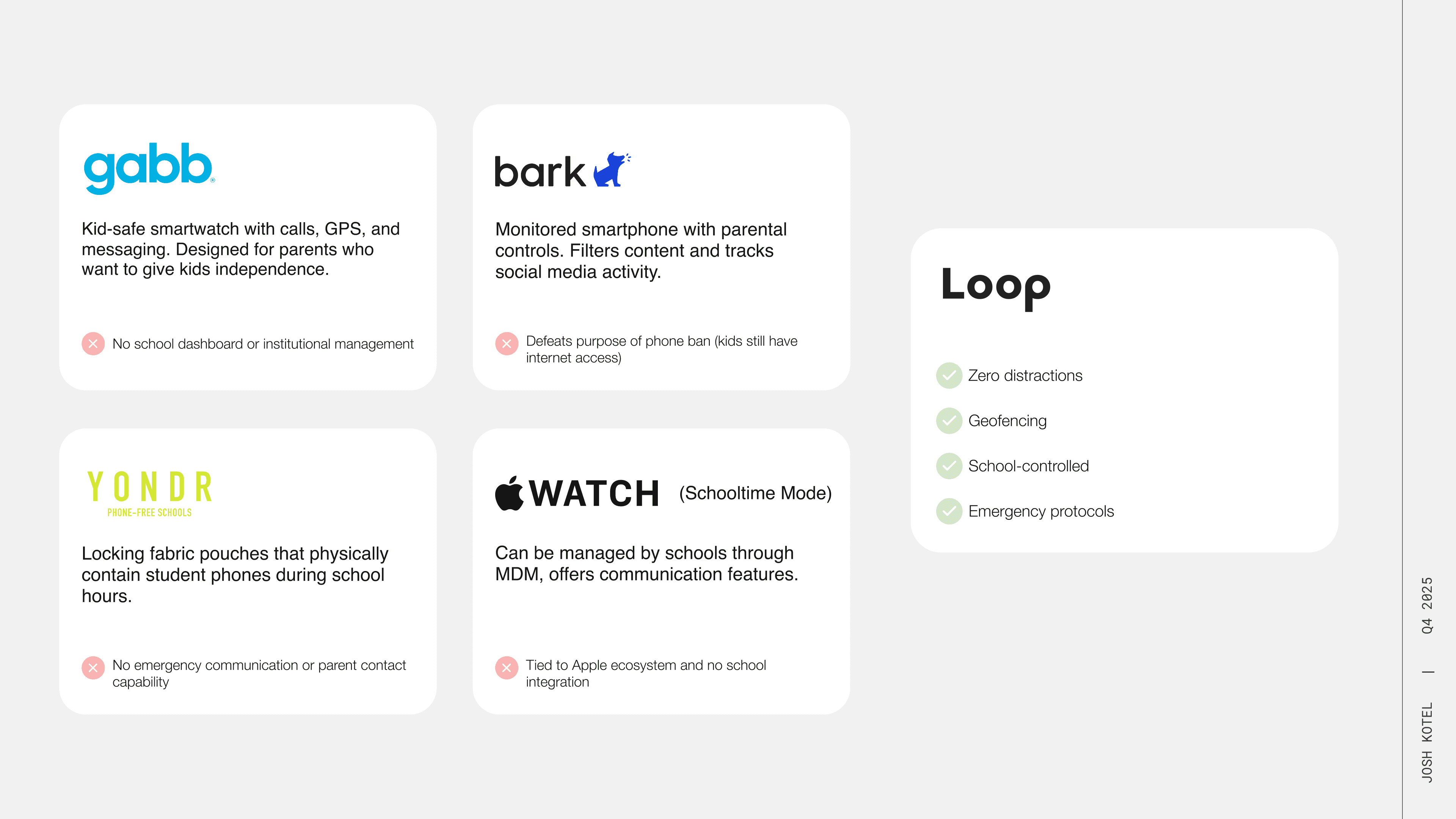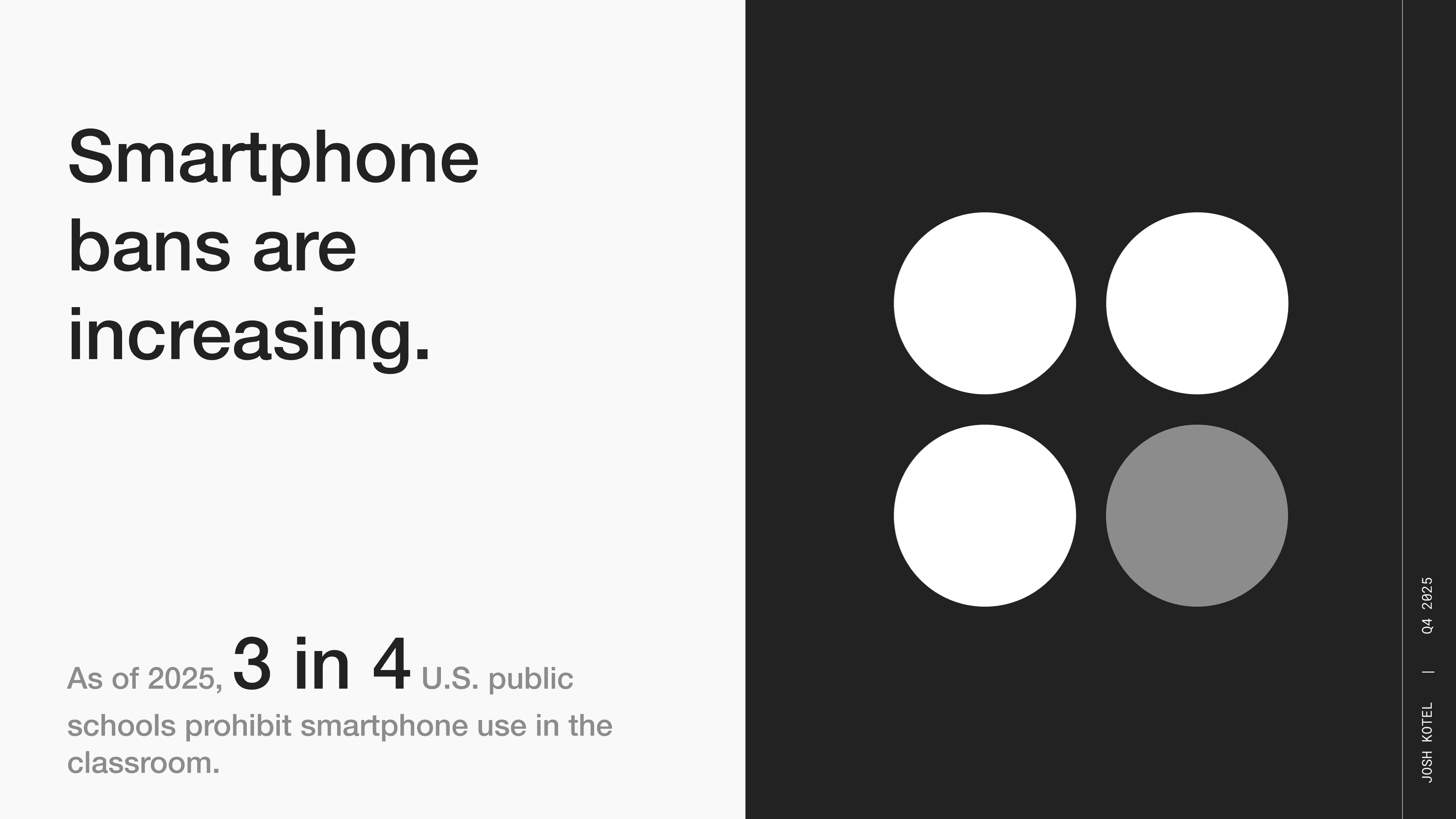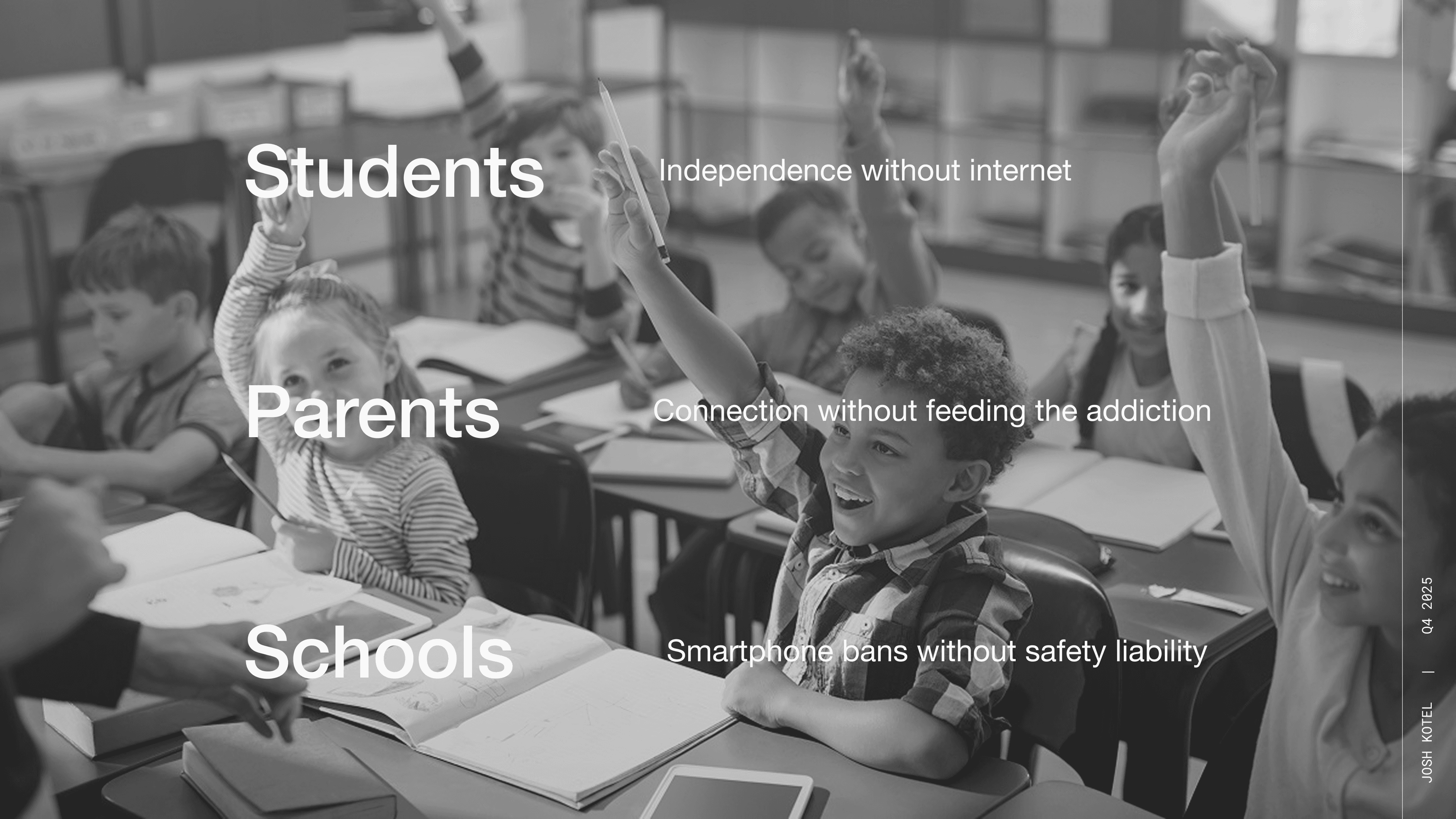 With 75% of U.S. public schools banning smartphones in the classroom, there is a sizable opportunity to mitigate the gaps in safety and connection exposed by this shift.