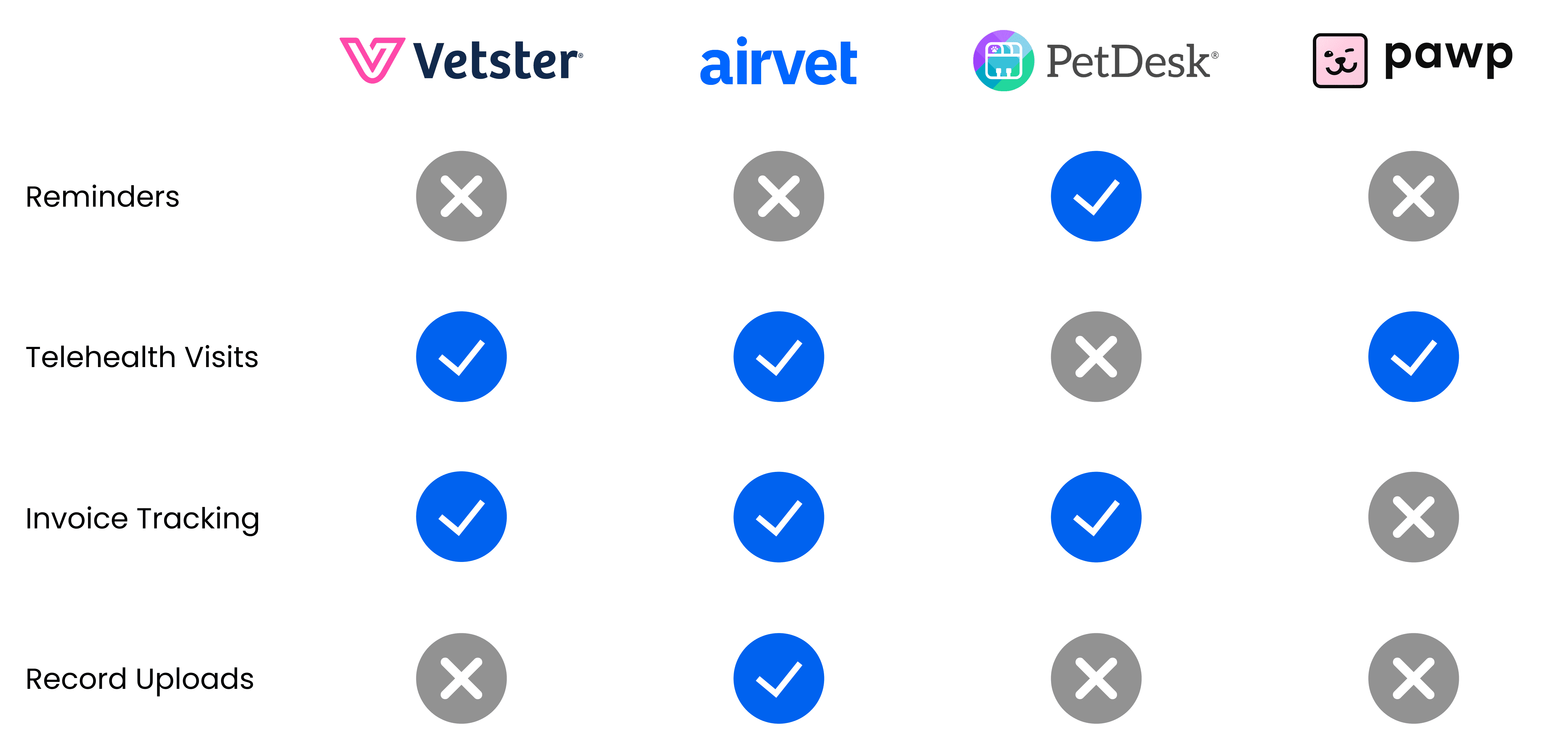 The dashboard houses essential tools like being able to easily upload Records, get medication and visit Reminders, and track your pet's Health Chart, all in one place.